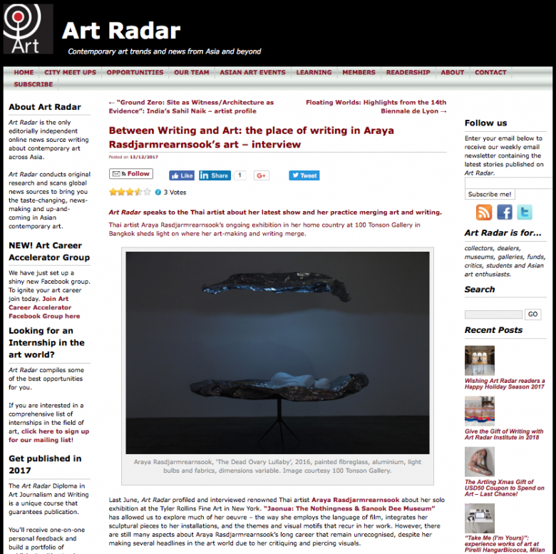 Art Radar : ช่วยพูดถึงการเขียนงานของคุณหน่อย โดยเฉพาะอย่างยิ่ง เมื่อคุณกำลังนำเสนอไอเดีย “ระหว่างงานเขียน กับ งานศิลปะ”